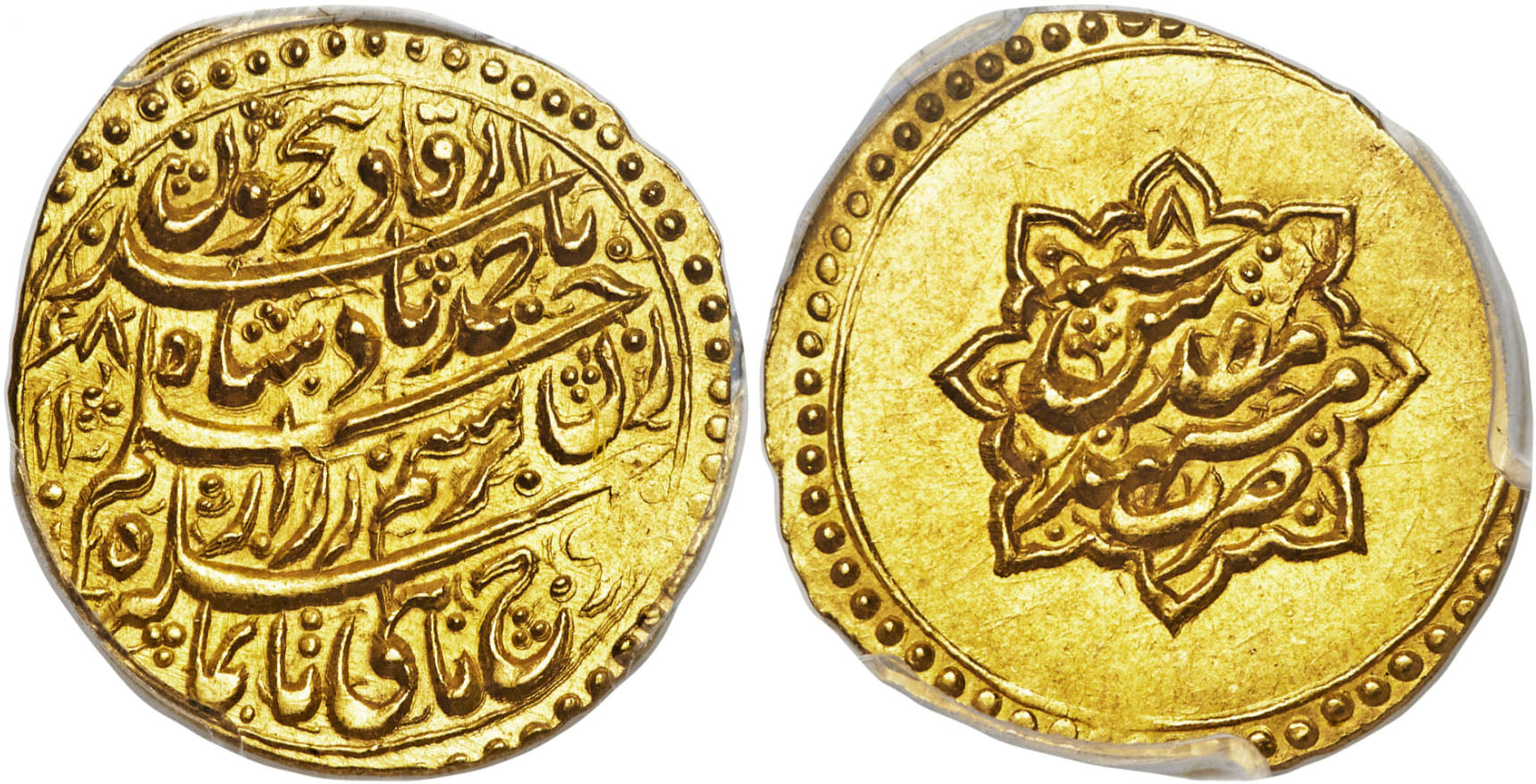 Afghanistan Durrani Ahmad Shah 1735-1772 AV Ashrafi Mashhad AH1168/8 KM-A639 PCGS MS63